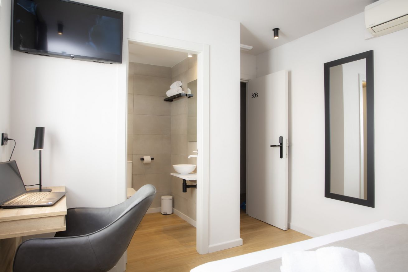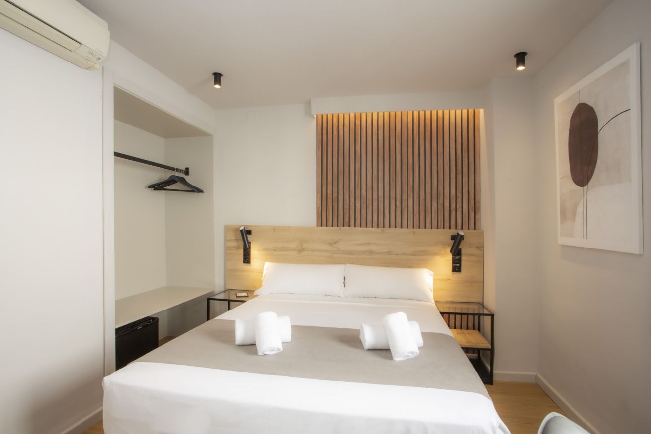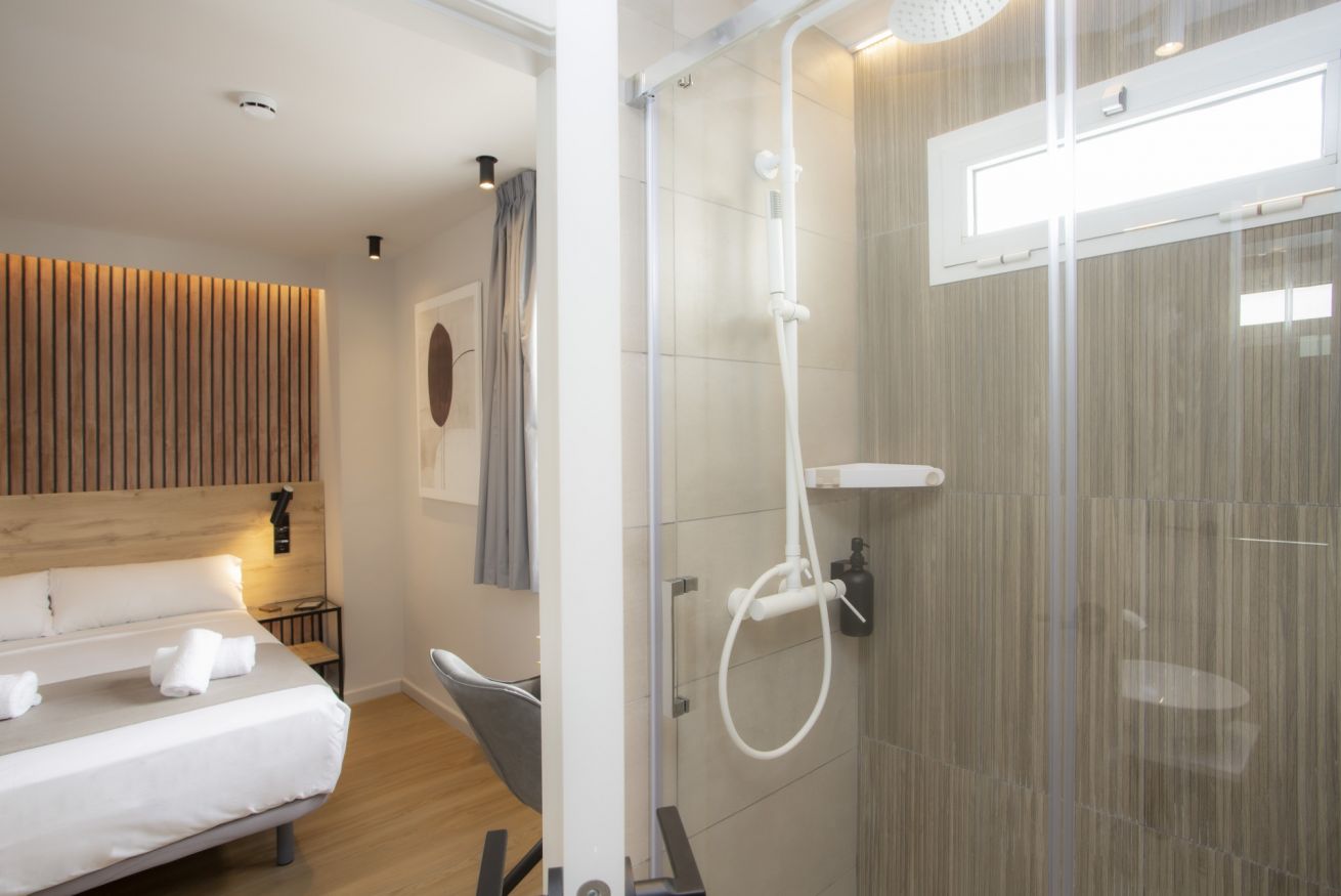 Es una habitación doble de 10m2, para 2 personas, cada habitación está equipada con armario, TV de pantalla plana, baño privado, ropa de cama y toallas.